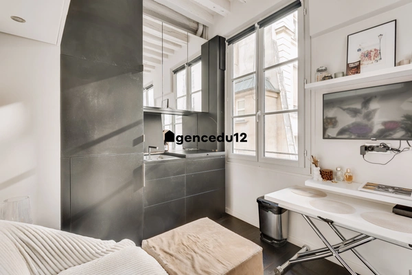 Idéalement situé au coeur de l'Île Saint-Louis, ce superbe studio en duplex d'une surface Carrez de 17,46m², poutres apparentes, en bon état vous attend dans une charmante copropriété, parfaitement entretenue. Occupant les 2ème et 3ème étages, cet appartement lumineux et baigné de soleil grâce à son exposition Ouest offre un cadre paisible. Rénové avec des matériaux de qualité, il se compose, au premier niveau, d'une petite entrée menant à une pièce de vie agréable avec deux grandes fenêtres et une cuisine ouverte, entièrement équipée et optimisée. À l'étage, vous découvrirez une chambre avec un accès direct à la salle de bain et aux toilettes. Ce bien optimisé, au charme indéniable, vous séduira par ses prestations de qualité. Vous profiterez de l'atmosphère unique de l'Île Saint-Louis, de ses commerces et de la proximité du métro. A visiter sans tarder !